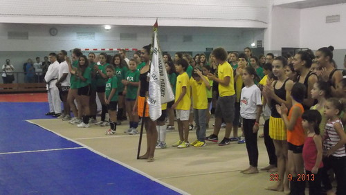 Fase final do festival com os atletas a começaram a siar do recinto desportivo, perante o aplauso dos muitso espetacdores que encheram a bancada do Gimnodesportivo do CRP. E asssim terminou esta brihante gala desportiva para assinalar a inauguração das obras de requalificação que foram inauguradas , neste dia de 28 de Setembro de 2013, no Gimnodesportivo da coletividade piedense que em Março deste ano completou 85 anos de vida